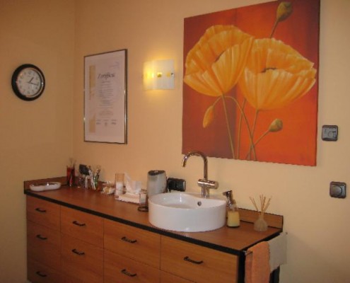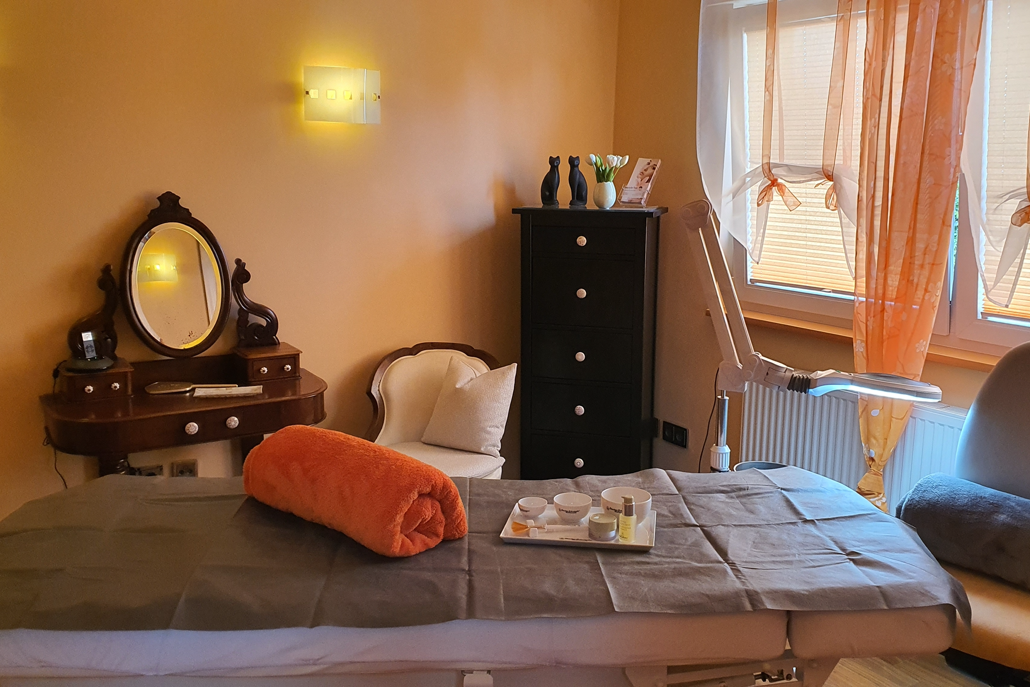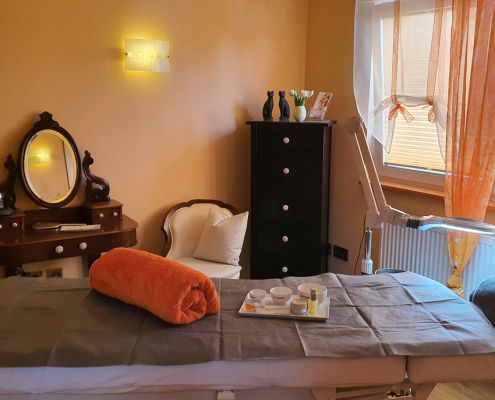In meinem kleinen, liebevoll in warmen Farbtönen eingerichteten Kosmetikstudio in Frankfurt – Eschersheim, können Sie den Alltag hinter sich lassen und sich bei Wellnessmusik und einer verwöhnenden Behandlung entspannen.